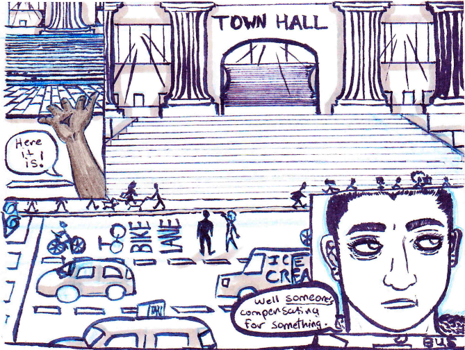 Yeah, this doesn't look a ton like the city hall in Montreal. BUT, the city hall in Montreal has a similar 'big architecture' look going on. Also, I drew this way before I knew where the story would be located, so cut me some slack. Next post should be up a little earlier in the day, and by then the website will be sorted one way or another. Til Wednesday!