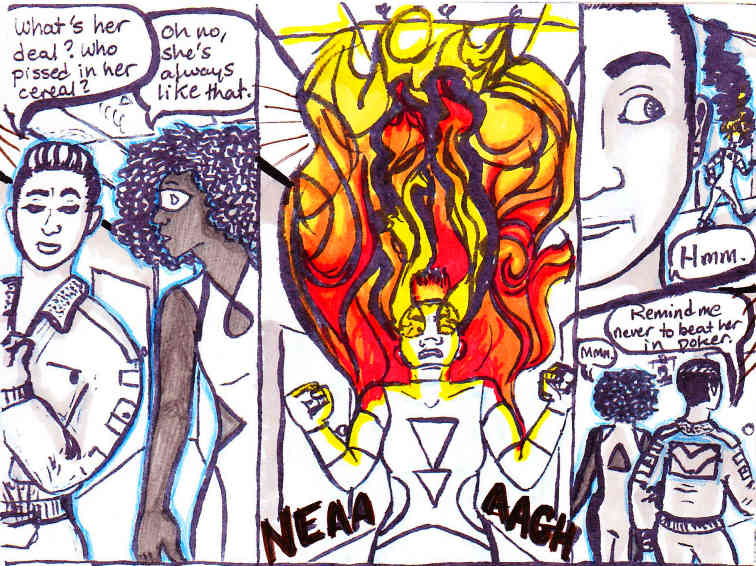 It wouldn't be so much of a hazard if she couldn't light herself on fire, but because she can we had to alter all the fire extinguisher systems. Pain in the ass.