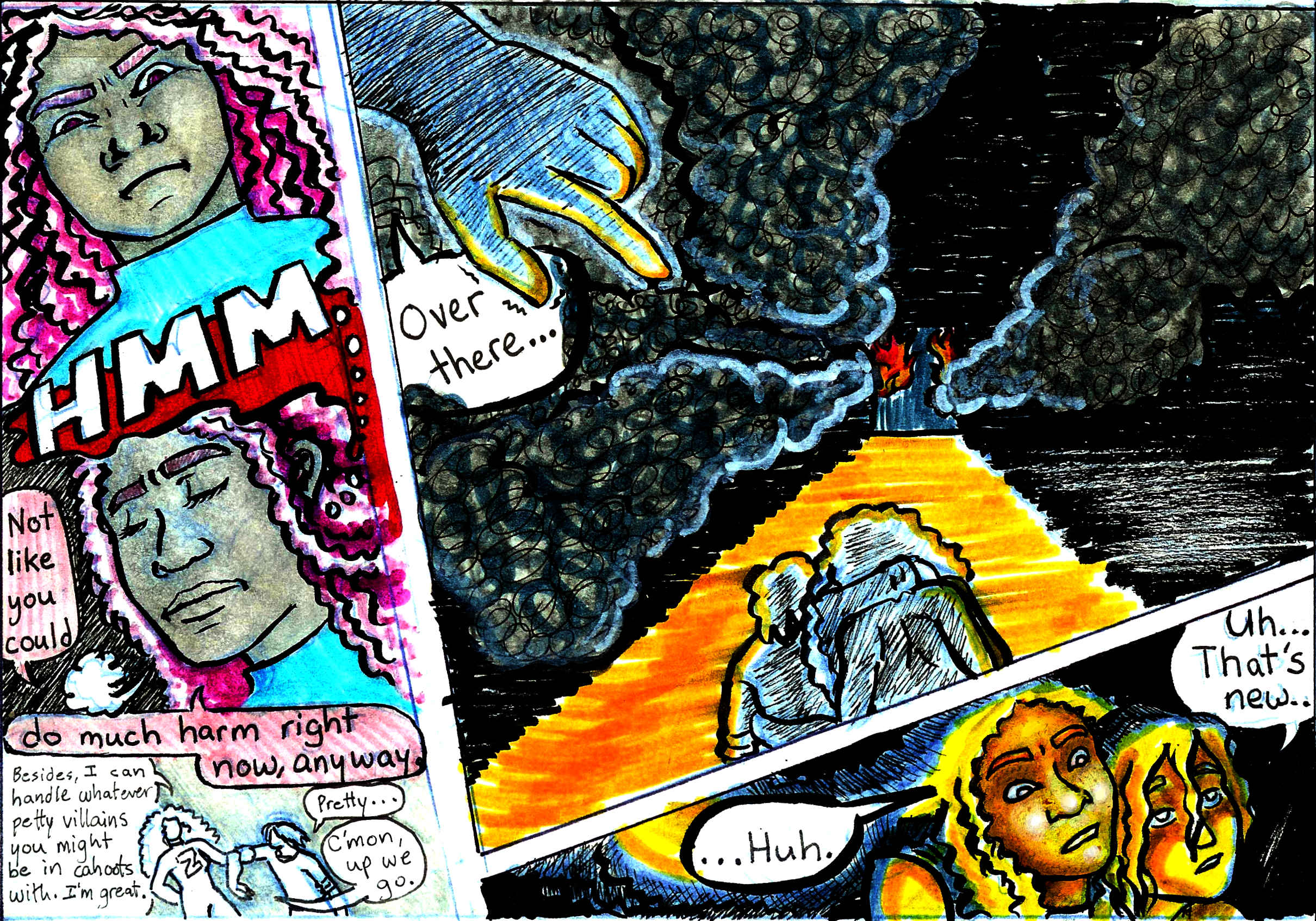 Order of chapter 3 so far (there've been a lot of time skips): Pages 2-6, TV Show Puns (extra), PAGE 16-18, Page 1, Page 7-15, and from page 19 onwards, we're BACK TO THE PRESENT!. I'll be putting up a timeline soon to help with any confusion. See ya in a week!