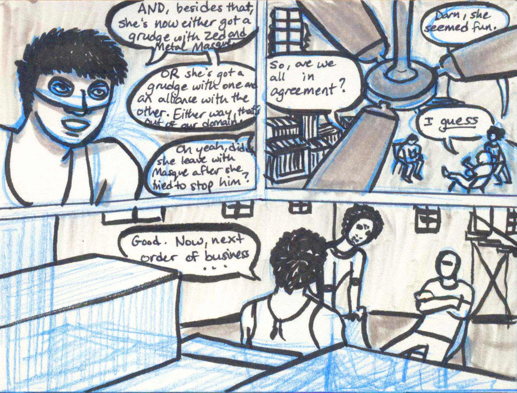 Well, this is the last Backstreet Gang Meeting we'll be checking in on for awhile! We've got two more extras, and then it's on to Chapter Two! I'm psyched, I don't know about you guys, but I think it's going to be really something.