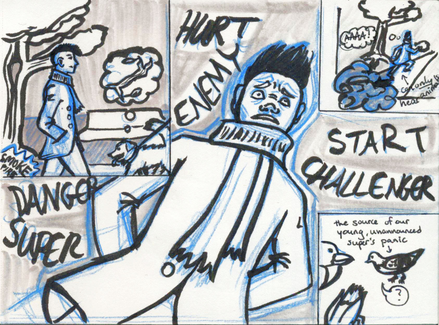 To clarify, this particular super has not announced that they are a super, and only hears the thoughts of animals, which are in images and sensations. So, to hear something that sounds like a choked-up radio yelling at you for being an enemy and a super is pretty freaky!